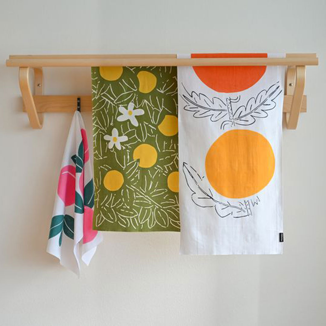 吉祥寺店には、色の重なりが美しいテーブルウェアに加え、てぬぐい、バッグなどのファブリックも揃います。
