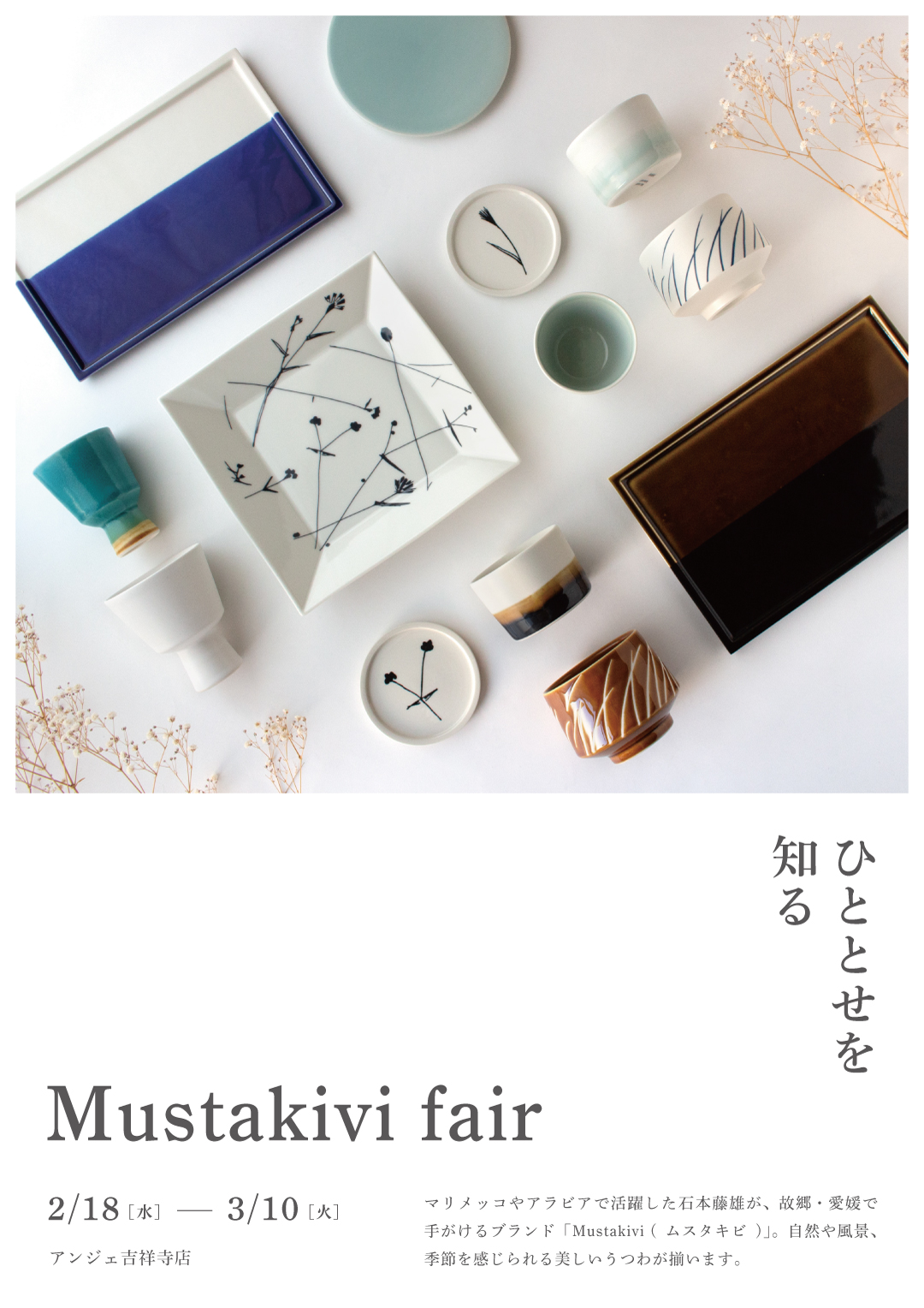アンジェ吉祥寺店では2/18(水)より、愛媛にあるブランド「Mustakivi(ムスタキビ)」のフェアを開催します。